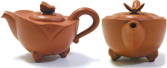 This Brilliant Butterfly Tea Set is manufactured by TenFu, a tea company based in China. The tea set is comprised of six cups, six saucers, tea pot, tea pitcher, and tea boat. On the top of the teapot is a beautiful clay butterfly with it's wings outstretched as if in flight, whereas, the the teapot itself has been shaped and creased to resemble a flower. The tea pot is also made from red clay and baked at a high temperatures for high quality, this tea set is ideal for serving semi-fermented teas such as Oolong, King's, Pouchong, and Ti Kuan Yin.