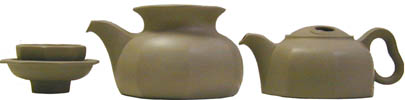 Yixing tea sets such as this one are prized by tea connoisseurs because of the clay's special characteristics. With repeated usage, this set will acquire its own unique flavor and increased luster and coloring that contributes to the enjoyment of tea. After usage, rinse with hot water and avoid using soap and other scented products that may be absorbed by the clay. The tea pitcher holds approximately 12.5 fluid oz. (370 mL), the teapot holds approximately 9 fluid oz. (266 mL), and the tea cups hold 1 fluid oz (30 mL). Available in a gift box with satin lining. Shipping dimensional weight is 14.00 lbs.
